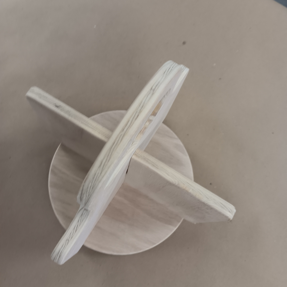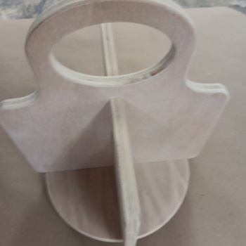 The base is mounted to a lazy Susan swivel bearing, with a 4" bearing on to a 7" round oak veneer piece.